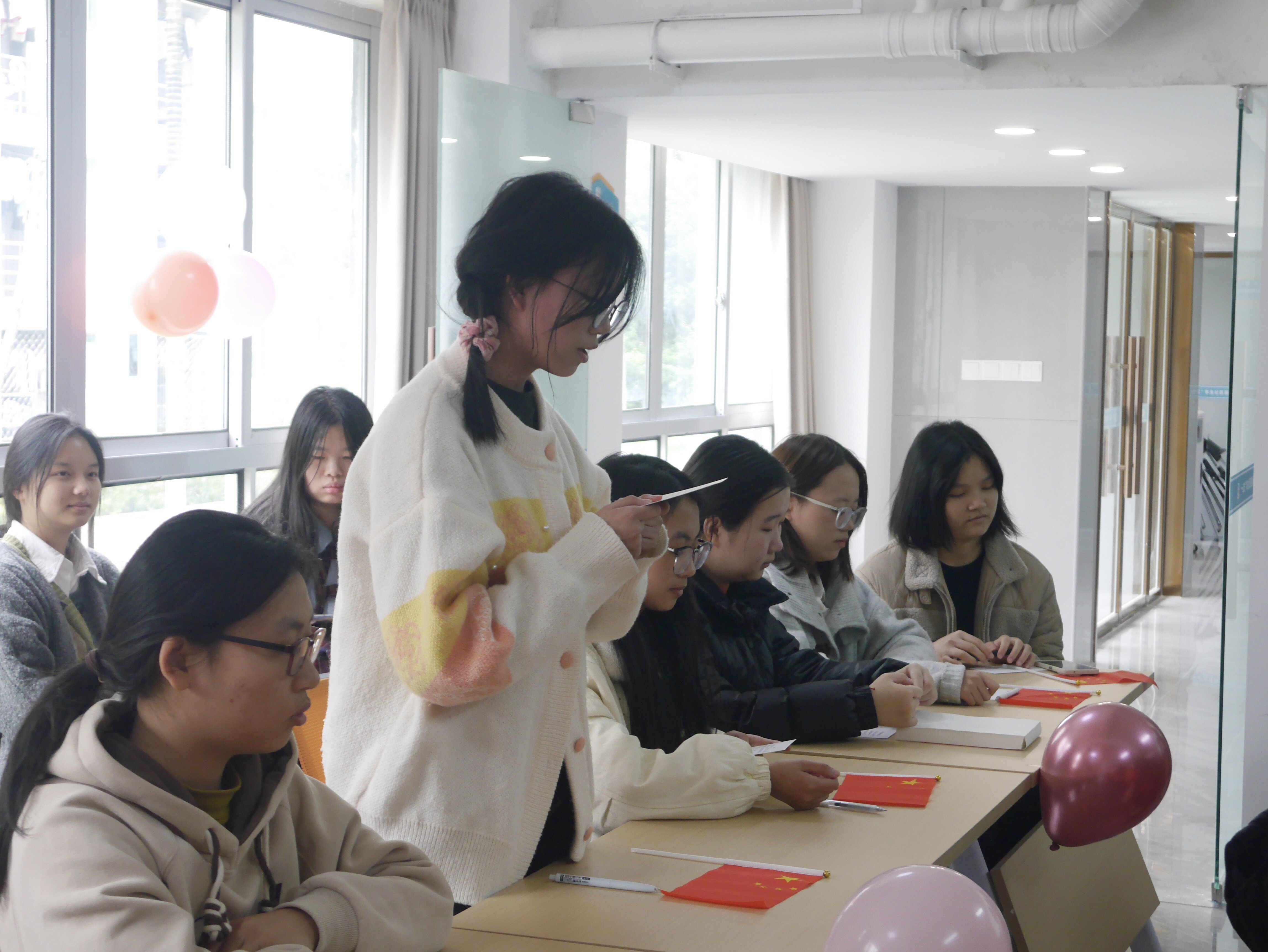 兼职辅导员、应用心理学专业研究生彭雯琪同学分享学习经验。她结合近期同学们的学习情况以及期末考试准备情况等开展心理健康教育,分享她关于大学学习中常见的困扰与调试的经验,强调认真备考、诚信考试的重要性。