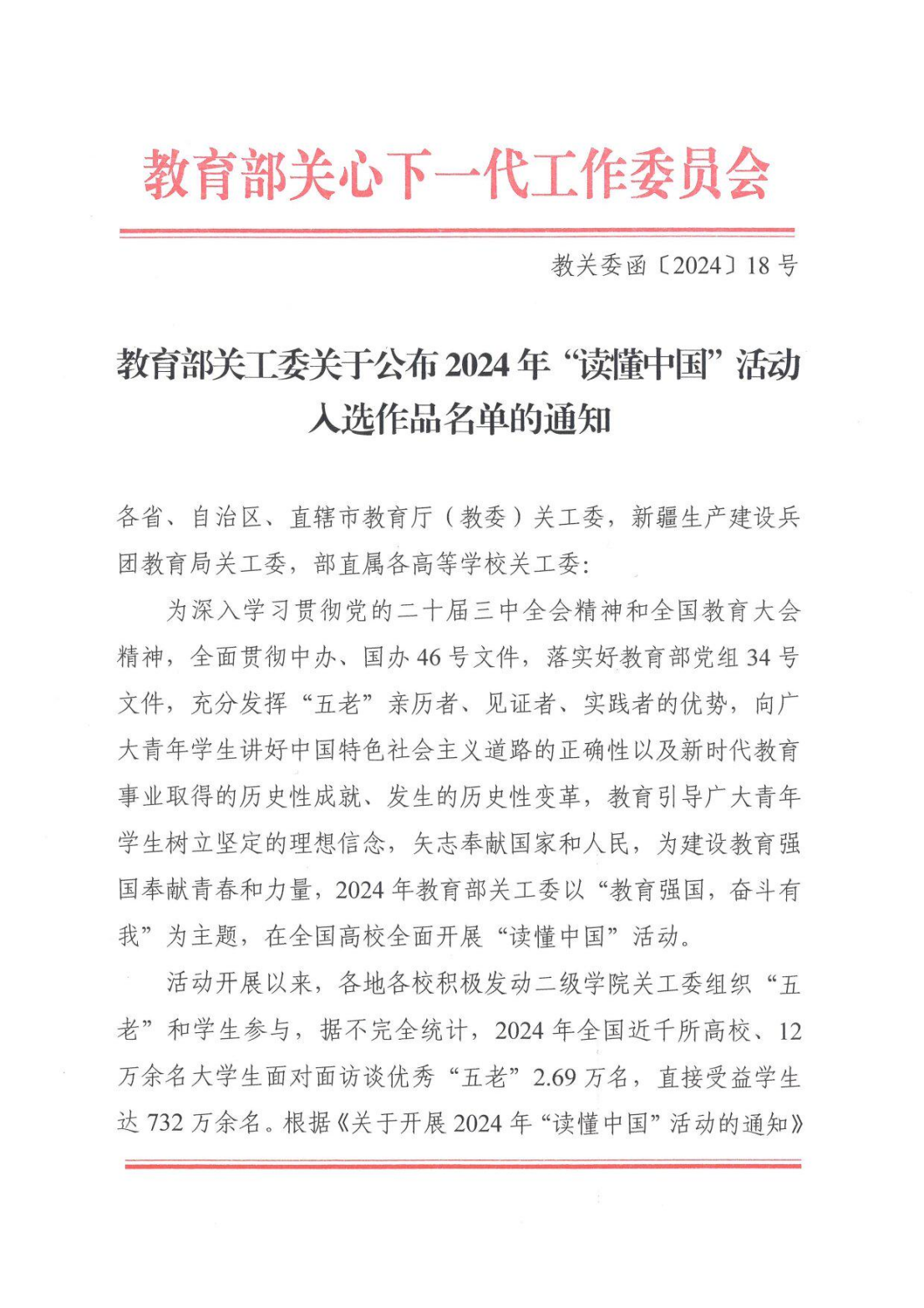 日前,教育部关工委公布2024年“读懂中国”活动入选作品名单,博彩平台大全