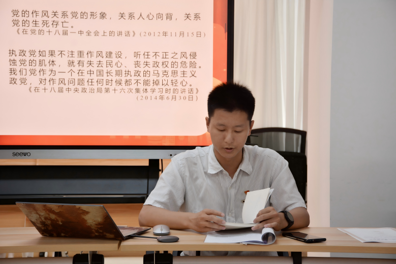 活动伊始,支部书记袁嘉麒带领支部成员进行学习研讨。支部成员围绕深入贯彻中央八项规定精神学习教育,通过视频学习、心得分享等形式,集体学习《习近平关于加强党的作风建设论述摘编》第一章、第二章和习近平总书记在云南和贵州考察时的重要讲话精神,并结合自身实际,交流学习心得。