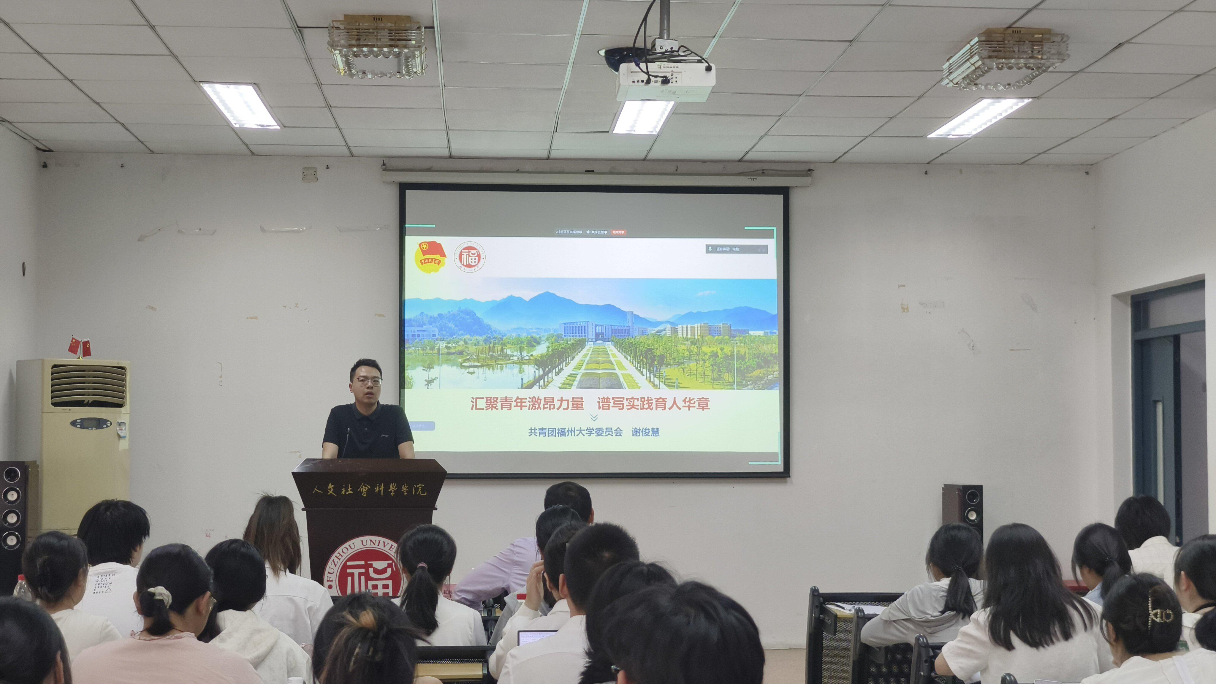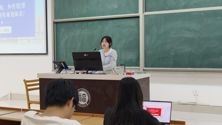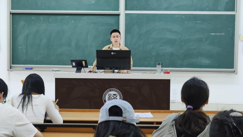 谢俊慧老师首先围绕福州大学“三创”教育实践成果与福州大学共青团“三创”育人工作,介绍创新举措与赛事成绩。随后,他就“挑战杯”赛事的举办情况、参赛类别等情况作重点说明,介绍《闽山闽水物华新》等往届挑战杯优秀作品、2024年福州大学优秀实践项目,鼓励同学们立足学科特色,借助赛事平台,将理论知识转化为实践能力,在实践中深化对知识的理解和应用。